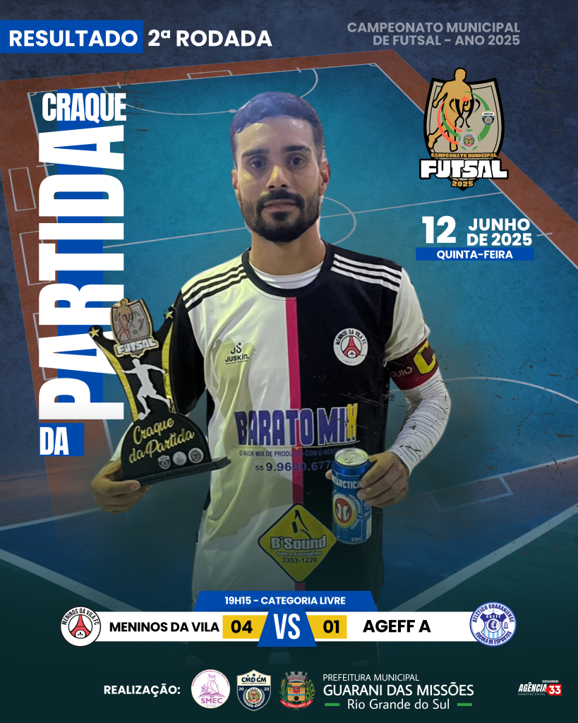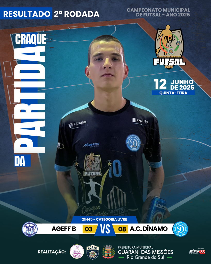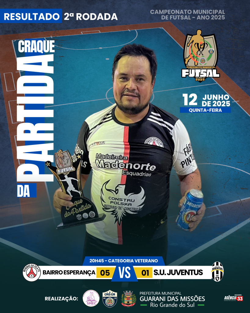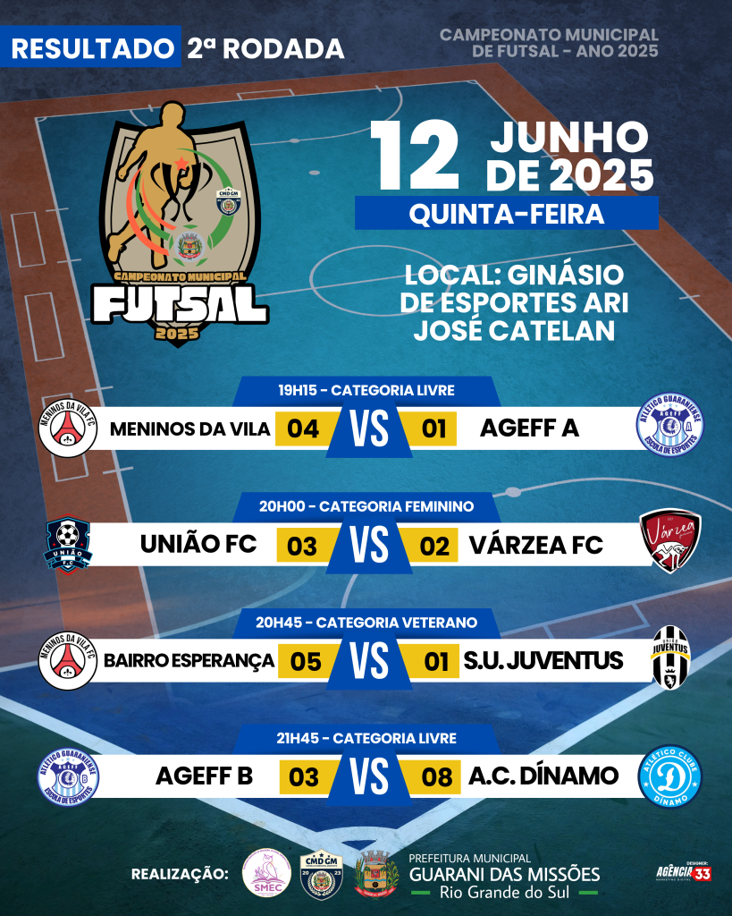 No dia 12 de JUNHO de 2025 (quinta-feira), foi realizado a 2ª rodada do Campeonato Municipal de Futsal – ano 2025, a mesma foi realizada no Ginásio de Esportes Ari José Catelan.